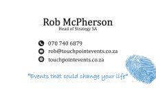 For the past 2 decades we have been involved in Production and Sales of Conferences, Workshops, Expos and Festivals around the country and abroad. With this knowledge and experience we have noticed GAPS in the festivals and events sector, A niche market need we plan to address. Having held positions including Commercial Manager, Sales Director and Business Development Manager on events such as Top Gear Festival-Dbn, the Clarkson, Hammond and May Live-Jhb, Business Opportunities and Franchise Expo-Jhb. We believe being involved with projects of this calibre, has provided insights around how to combine , entertainment, education as well as retail when producing great events. Events that are rewarding for both partners and visitors alike. -Rob McPherson